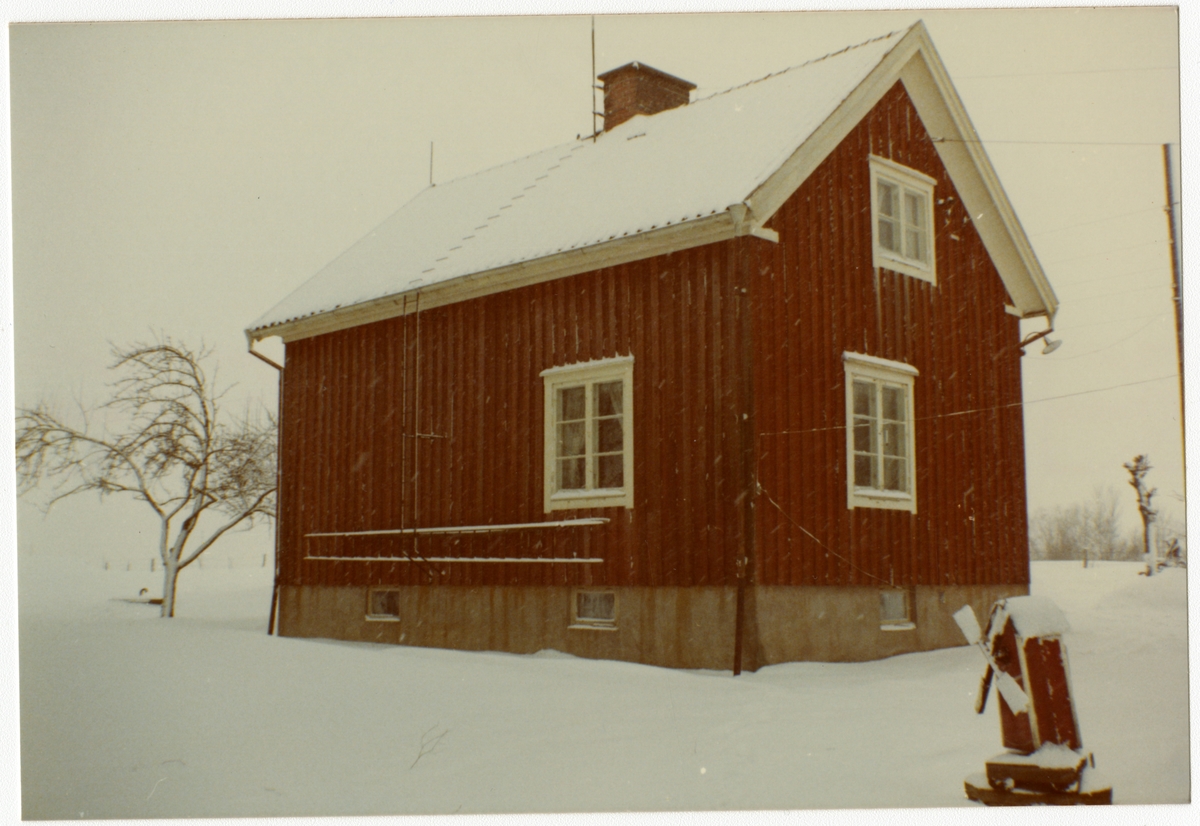 Hus eller banvaktstuga med liten väderkvarn.