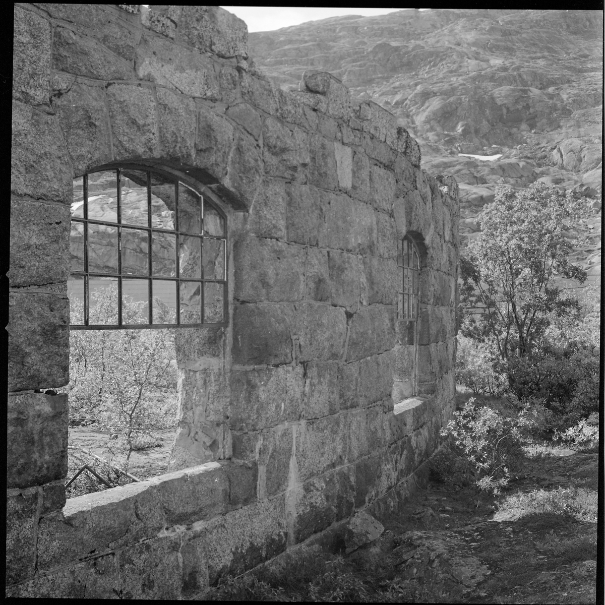 Titel: Ruinen efter gamla lokstallet i Riksgränsen.