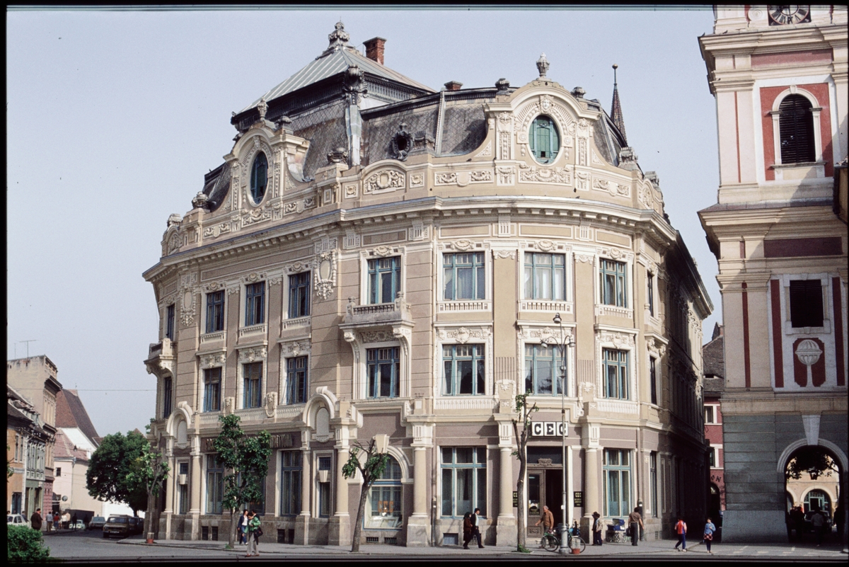 Byggnad med detaljer i Sibiu, Rumänien.