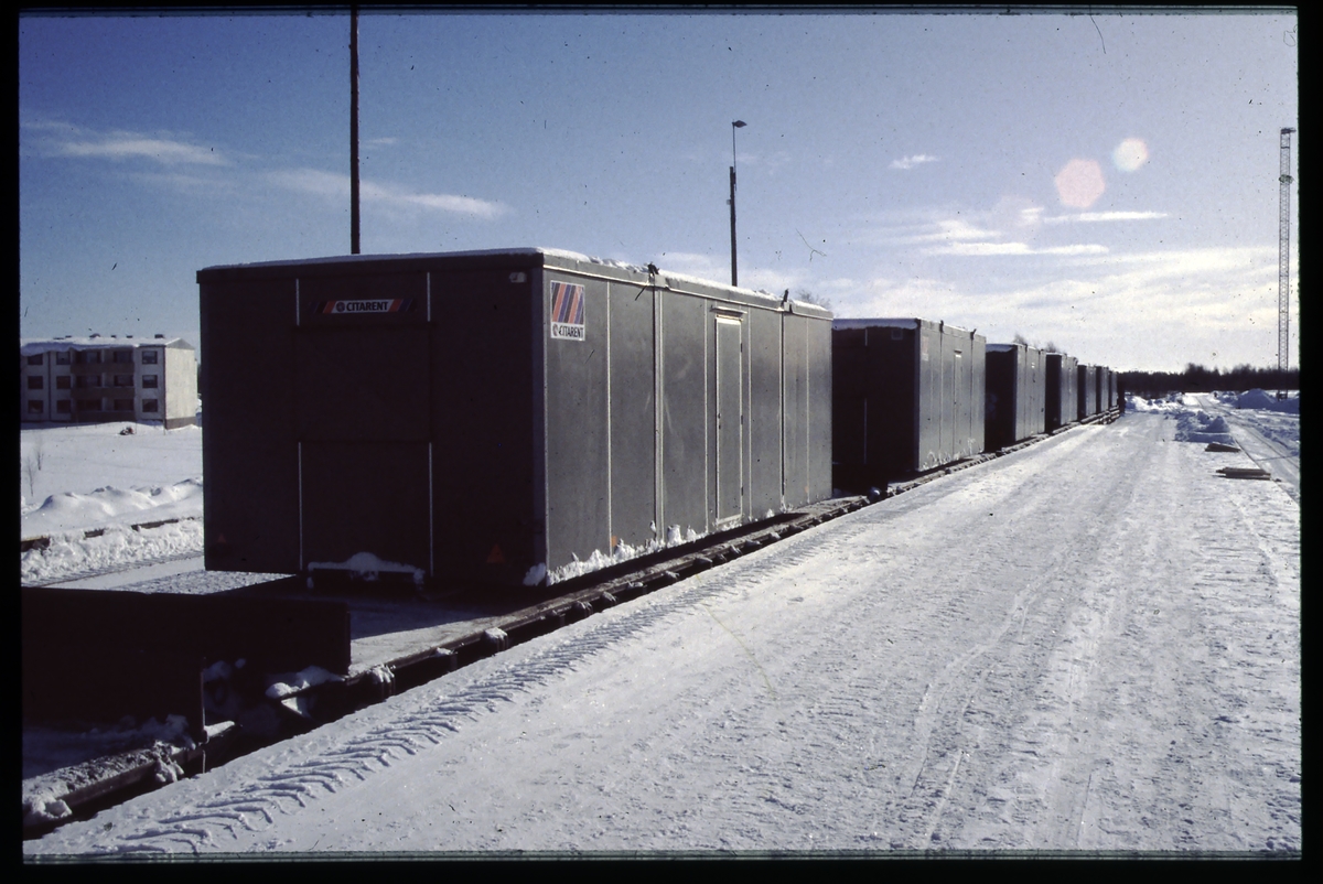 Godsvagn lastad med husmoduler.