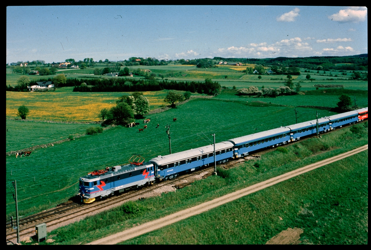Statens Järnvägar, SJ Rc-lok med provmålning, här med persontåg.