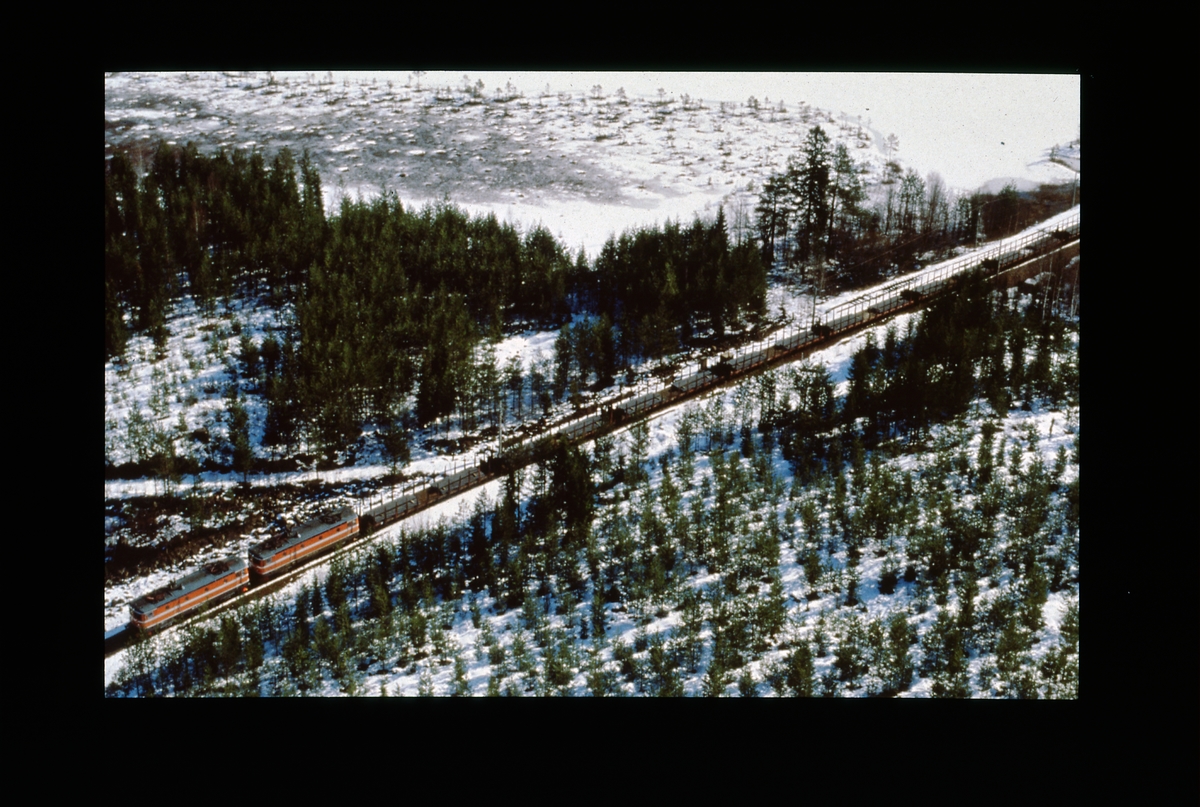 Multipelkopplade SJ Rc-lok med godståg. Statens Järnvägar.