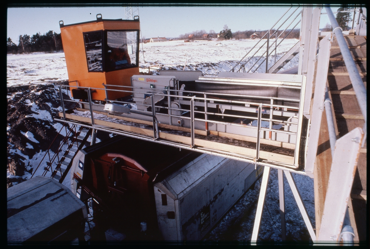 Lastning av SJ Tals 87-74-566 6 007-6 godsvagn. Statens Järnvägar.