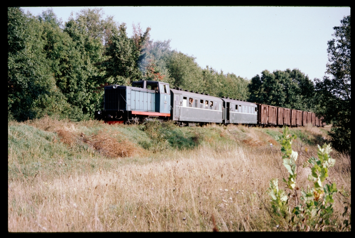 Lokomotor med person- och godsvagnar. På linjen mellan Vapnyarka - Yampil'.