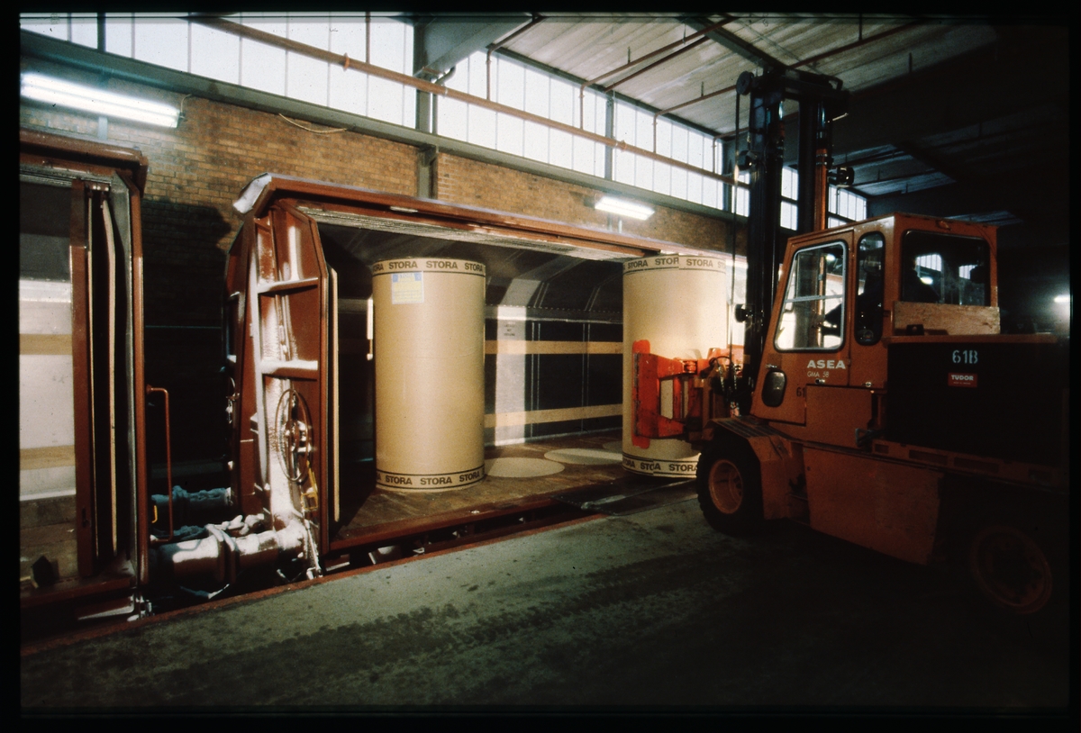 Titel: Lastning av SJ Hbikks, Statens Järnvägar.