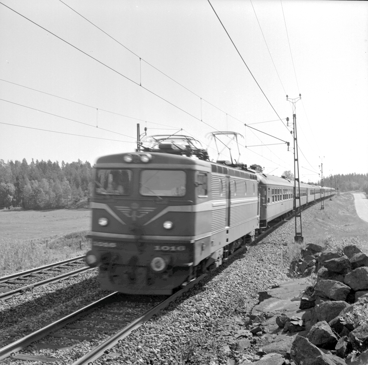 Statens Järnvägar, SJ Rc2 1016 med persontåg på linjen