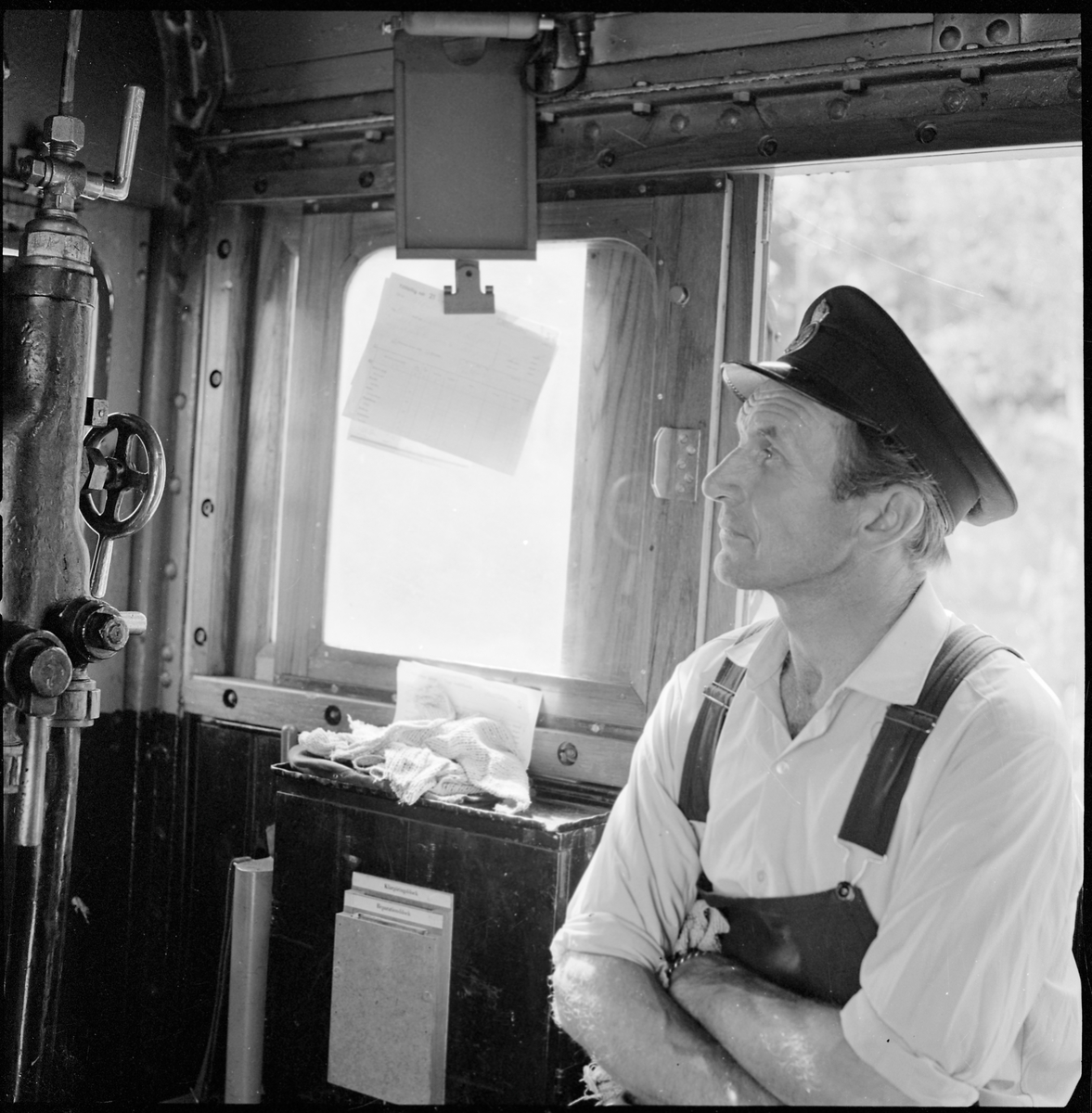 Lokeldare Helge Vikner håller koll på ångtrycket.