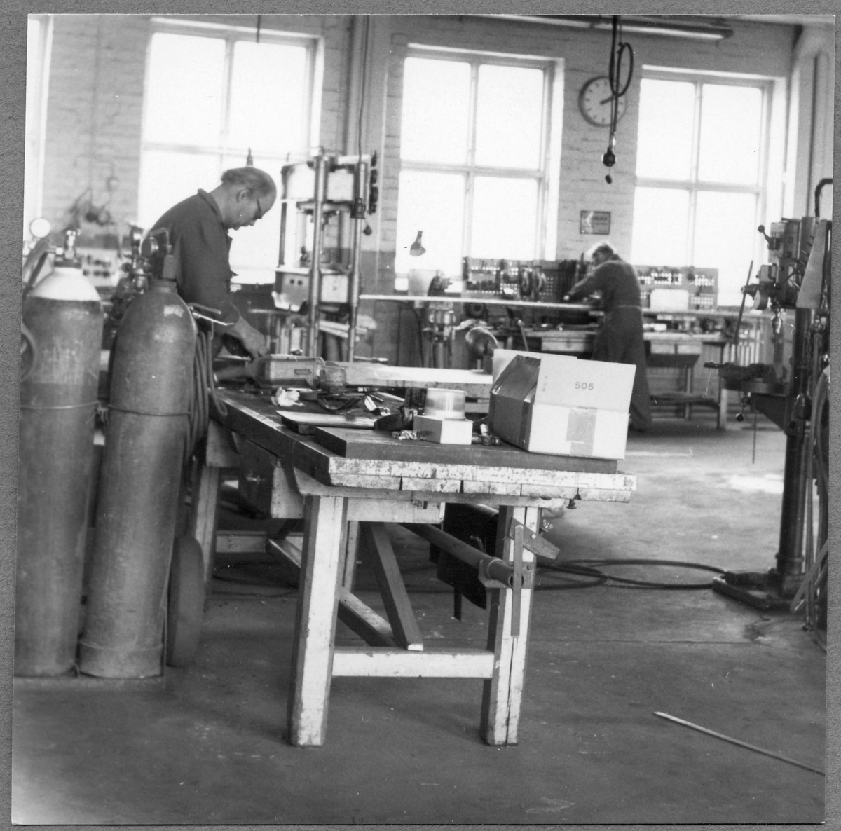 Statens Järnvägars, SJ, anställda som arbetar i en verkstad.
