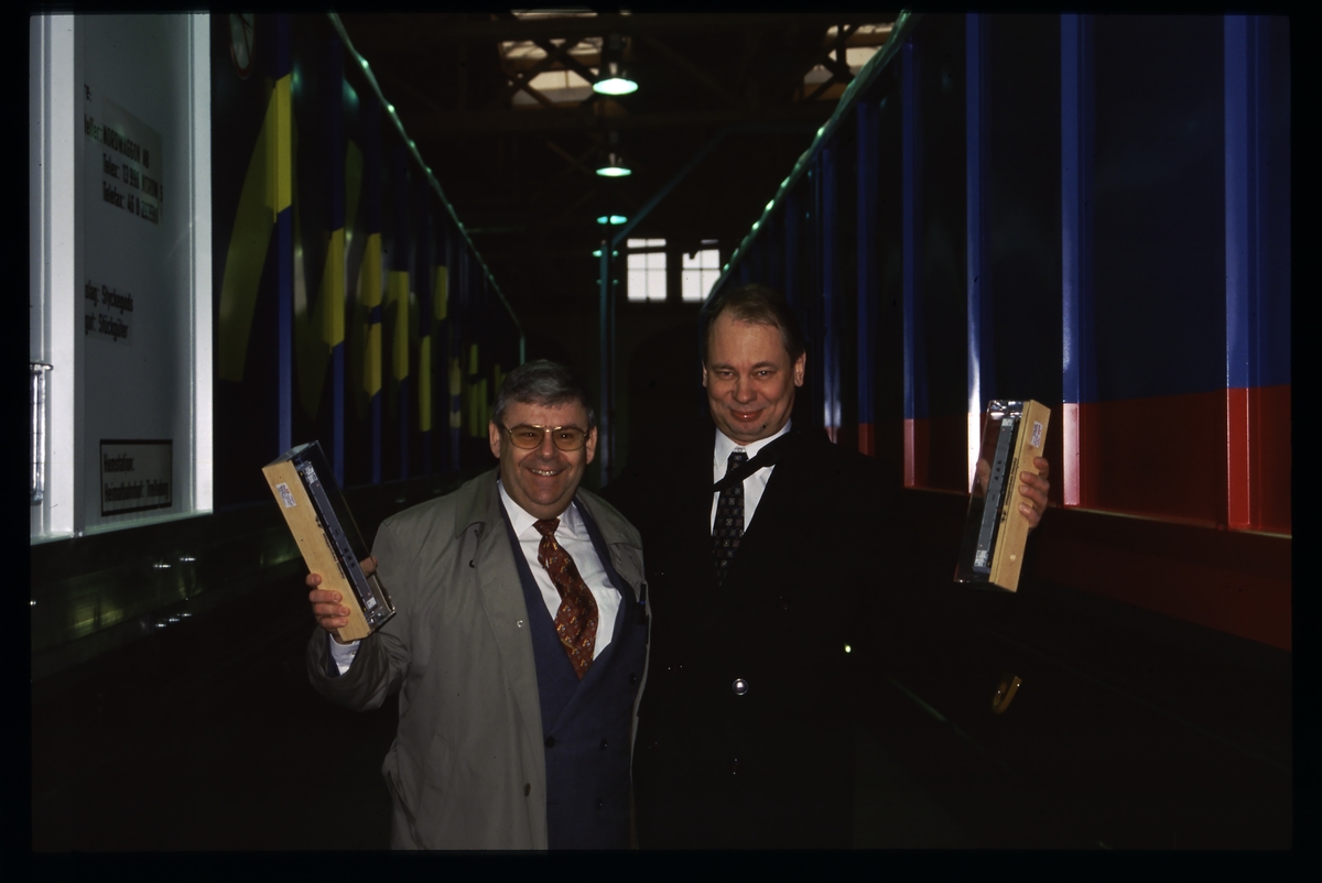 Utställningsbesökare mellan två SJ Habins.