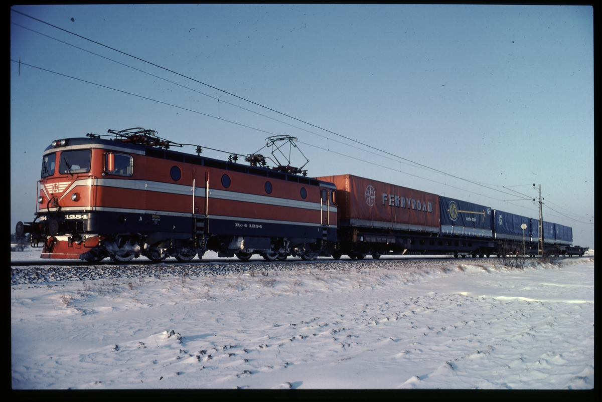 Statens Järnvägar SJ Rc4 1254 med Sds-vagnar.