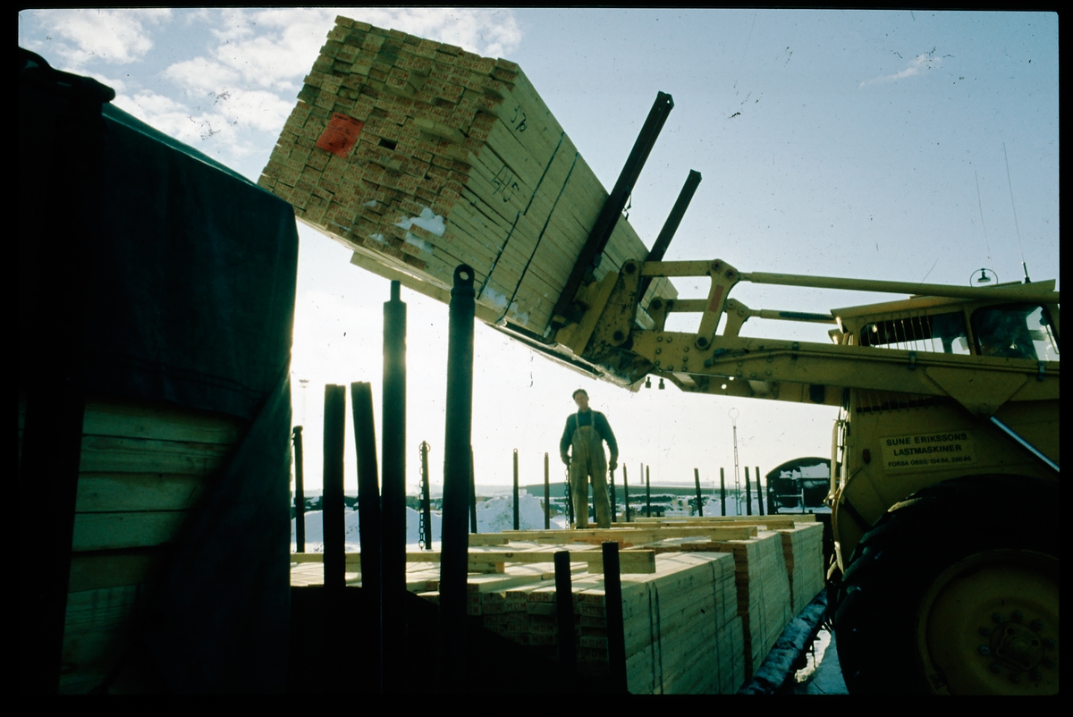 Lastning av Statens Järnvägar SJ Oms med virke.
