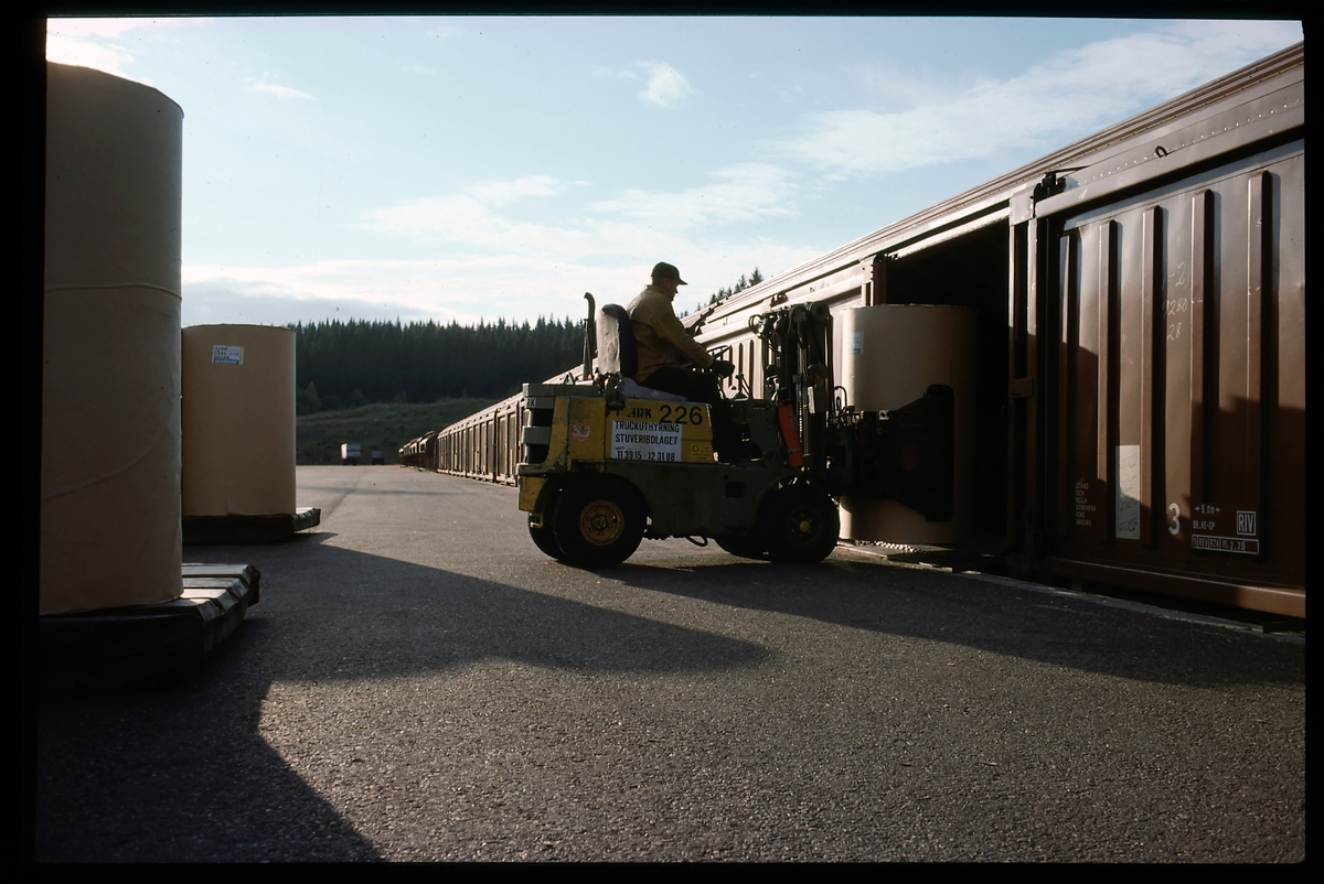 Lastning av papper i en Statens järnvägar SJ Hbikks-u.