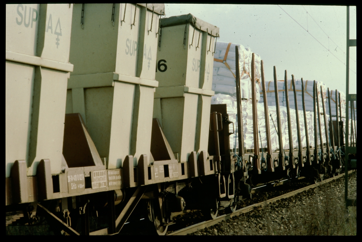 Container från "Supra" på en vagn Littera SHs 20 74 410 0027-1.