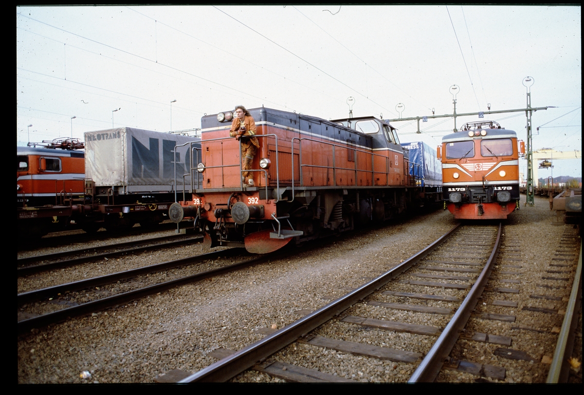 Statens Järnvägar, SJ T44 392 under pågående växlingsarbete. Till höger syns SJ Rc4 1173.
