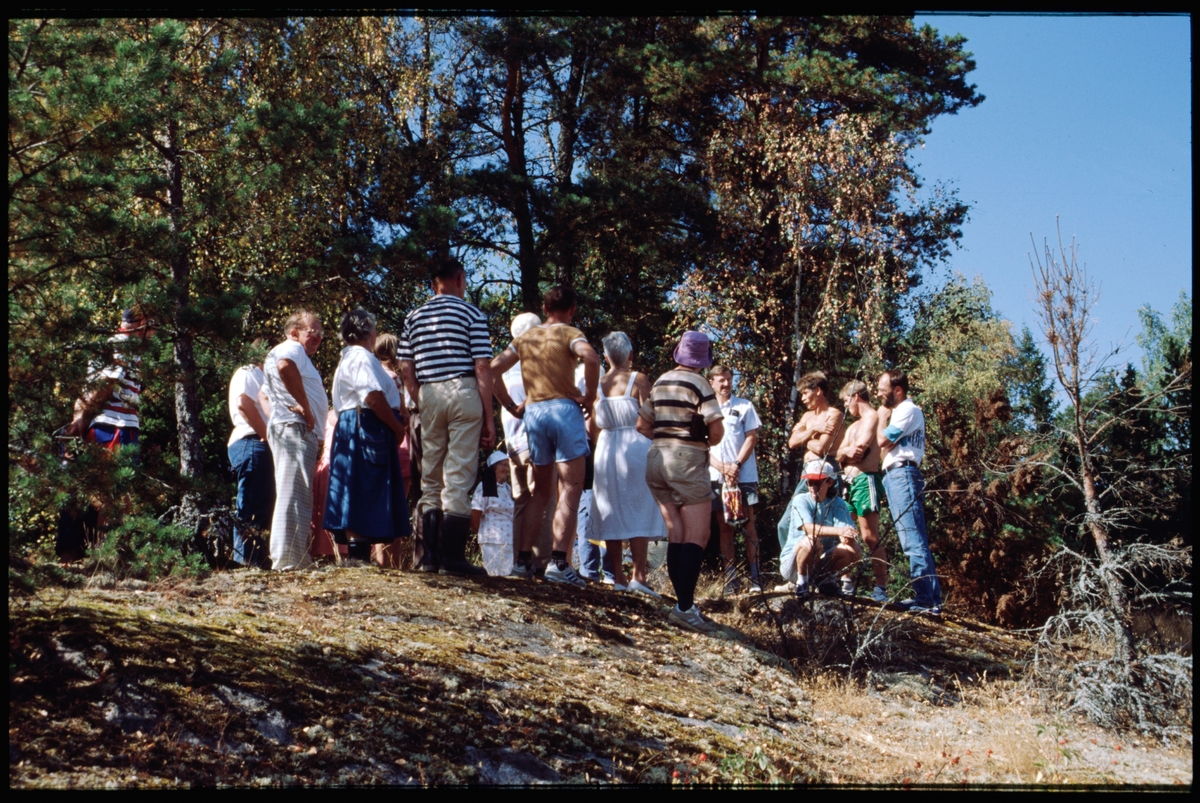 Länna hembygsförening på utflykt vid Lännaborgen.