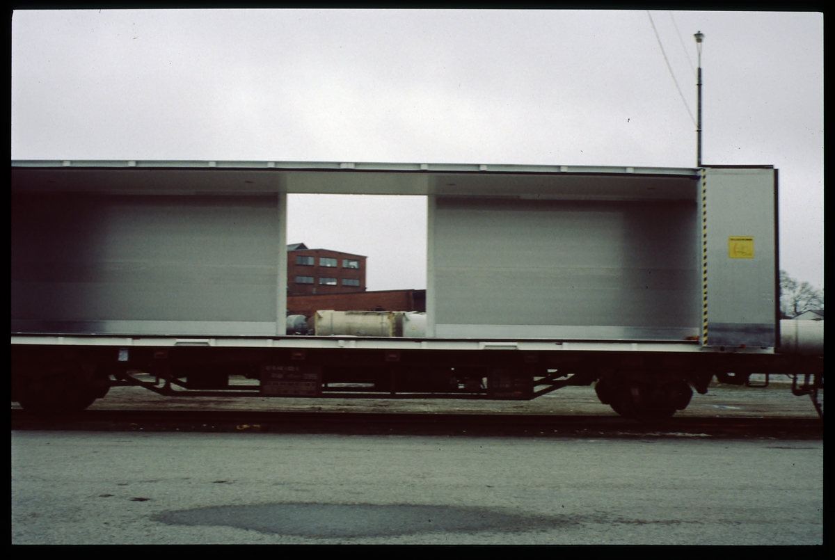 Statens Järnvägar, SJ jumbocontainer 1361 001 lastad på SJ Lgjs 42-74-440 4 635-8. Statens Järnvägar.