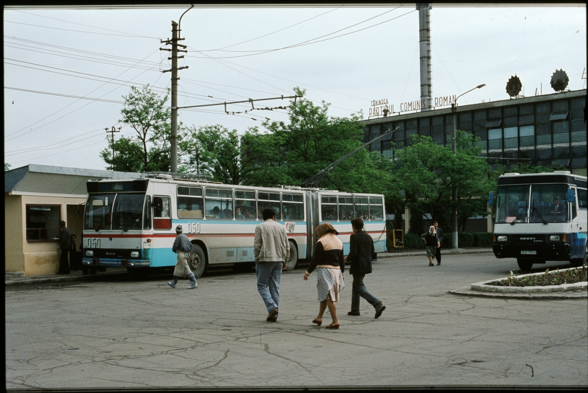 Trådbuss utanför fabrik i Cluj - Napoca, Romänien.