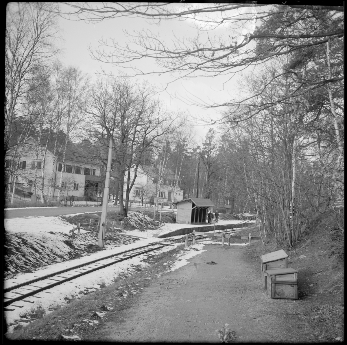Resande vid hållplats Vikingavägen på Djursholm i Stockholm.