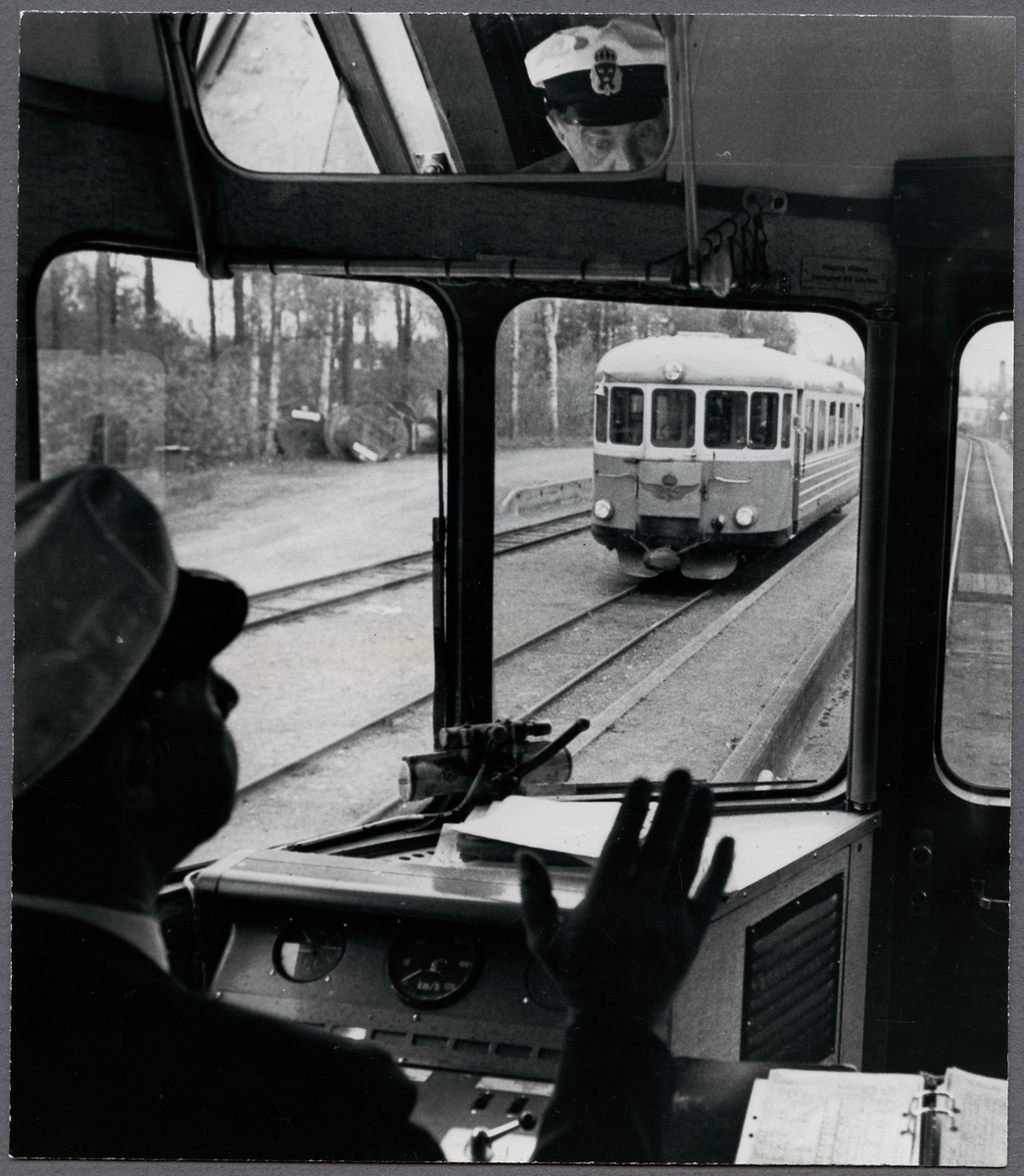 Personal i arbete Rälsbussmöte mellan Växjö och Hultsfred.