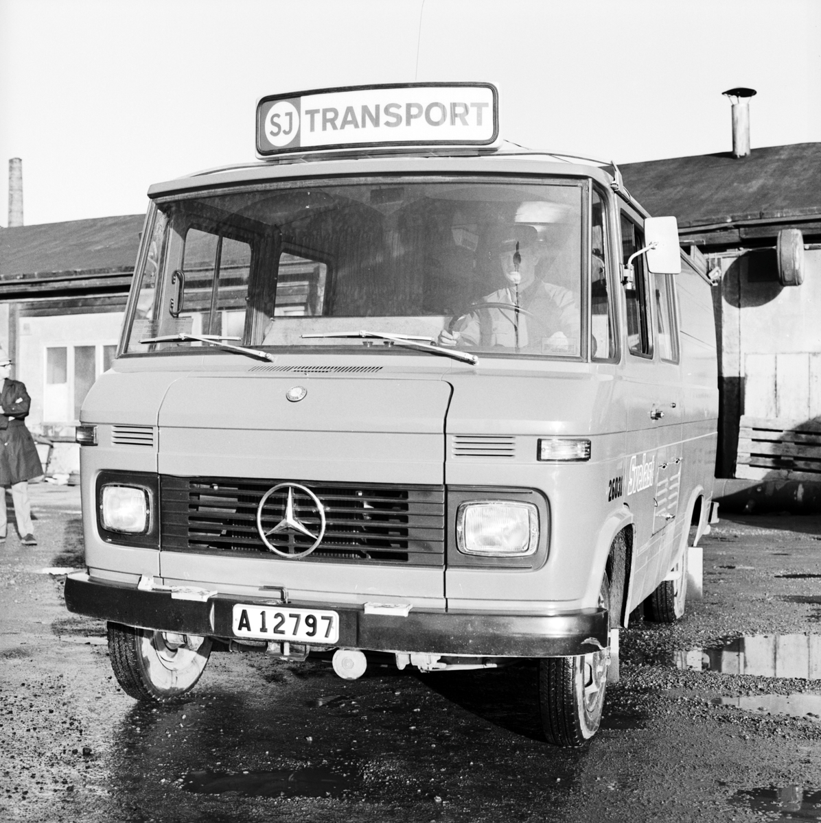 Statens Järnvägar, SJ Transport-skylt på Svelast-bil. Foto för Karek, (Rådström)