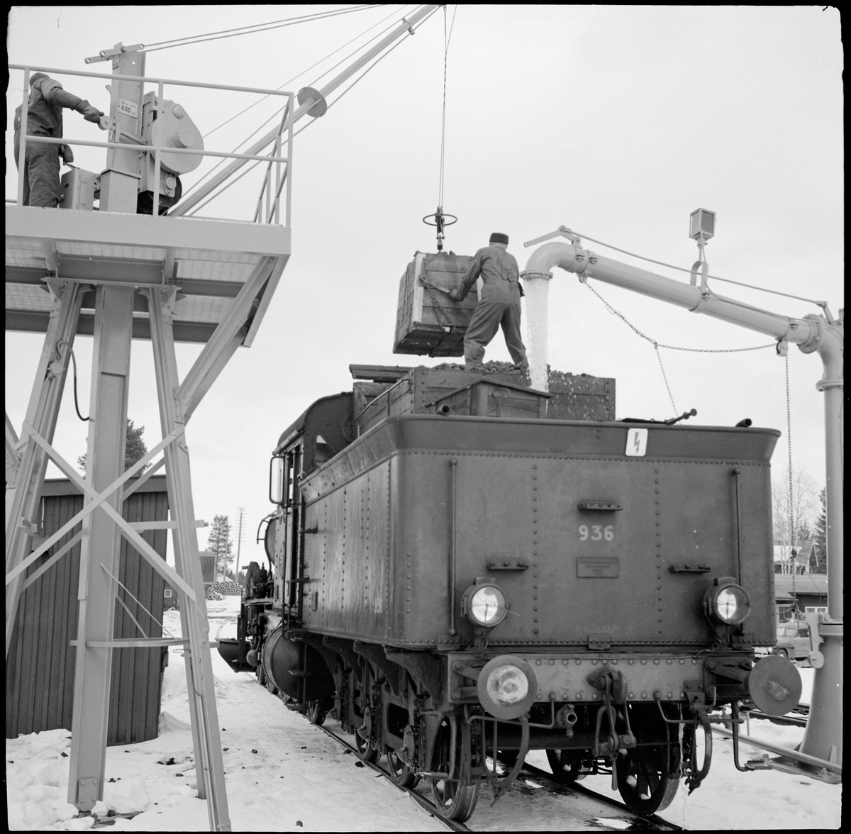 Bunkring av kol, Hoting. Statens Järnvägar, SJ E2 936.