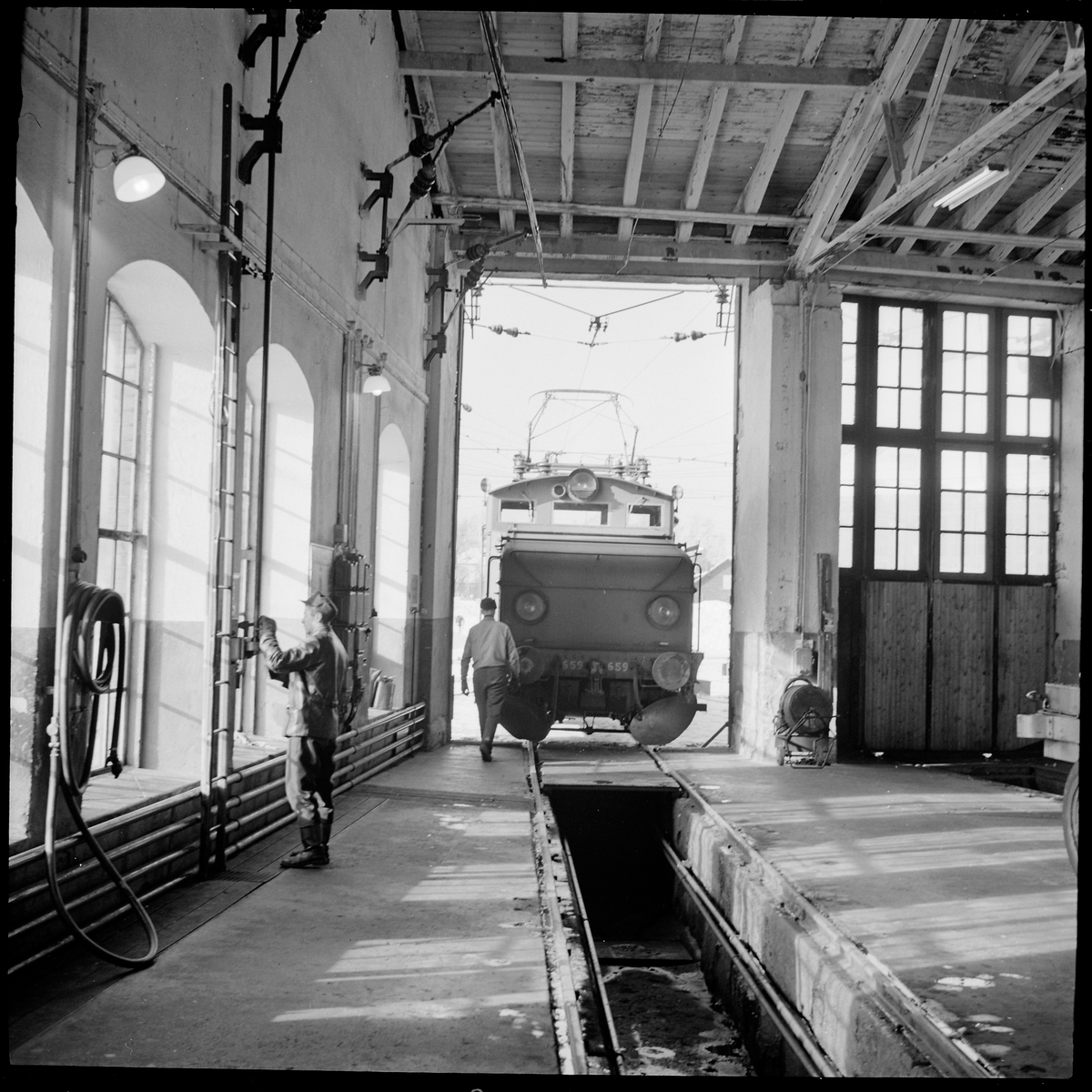 Rolf Oskarsson tar in SJ Hg 659 i stallet. Statens Järnvägar.