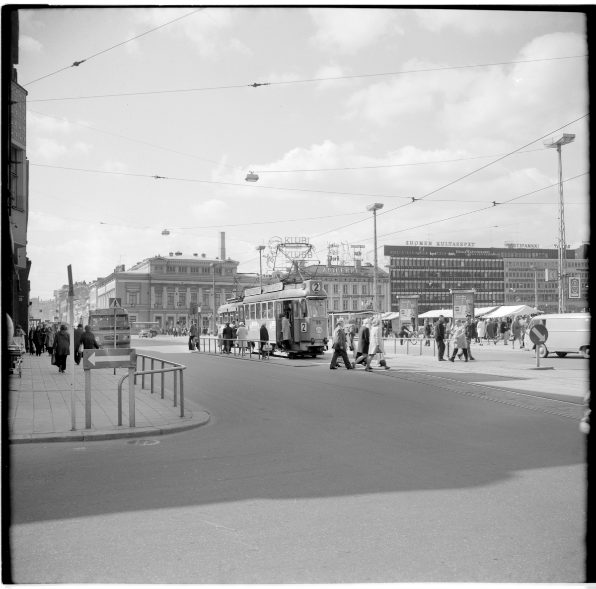 Turun Kaupungin Liikennelaitos, TuKL RM2 53 "spökvagn" linje 2 vid hållplats på Salutorget.