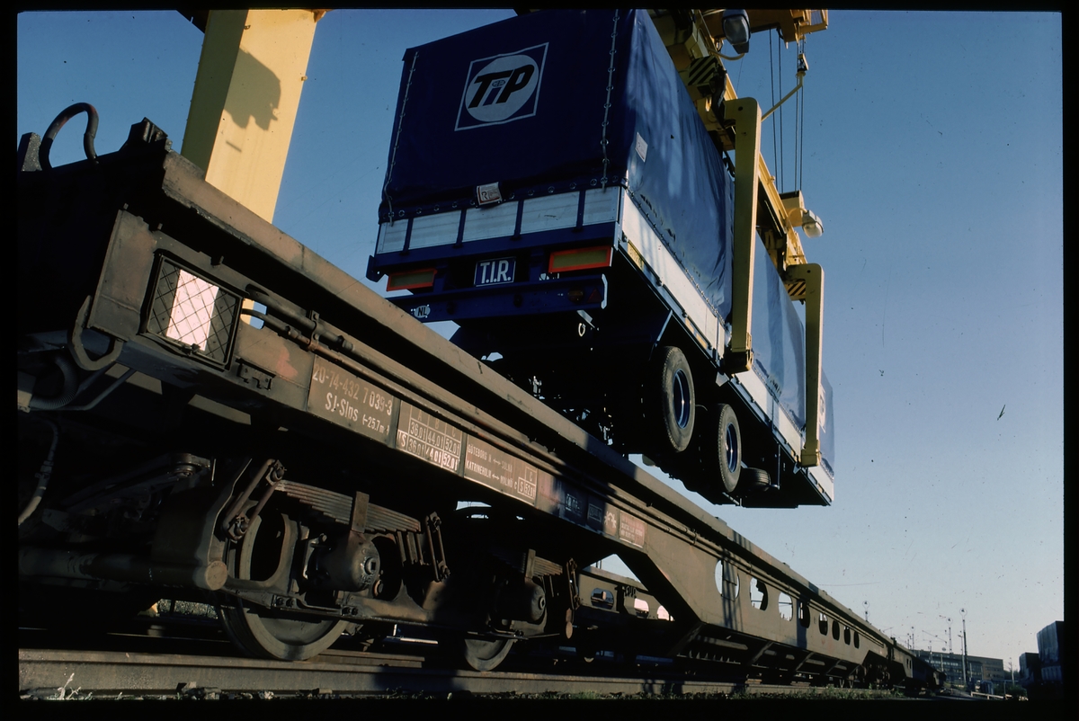Lastning av lastbilssläp på SJ Slps. 20 74 432 7 039-3.