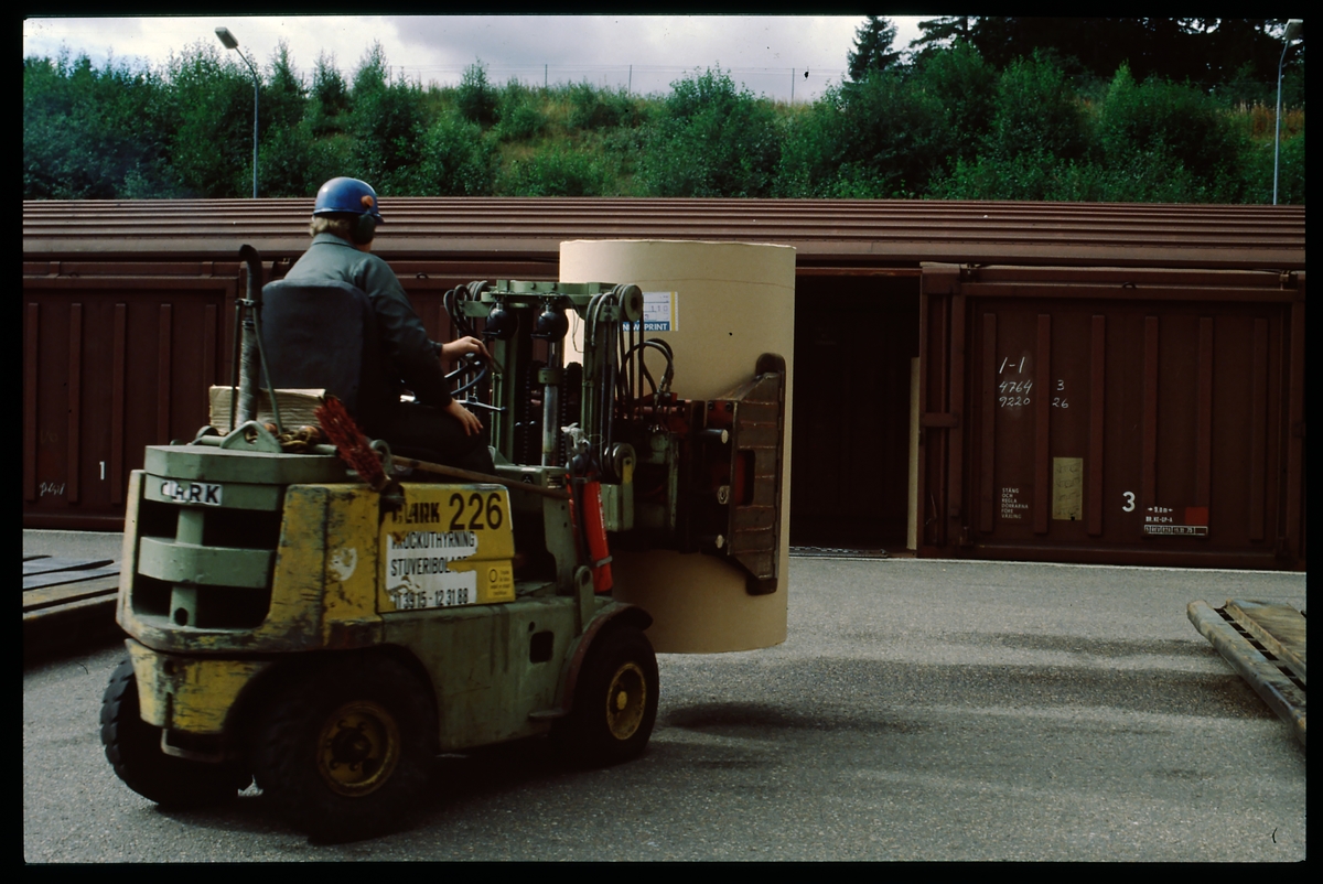 Lastning av papper i en Statens järnvägar SJ Hbikks-u.