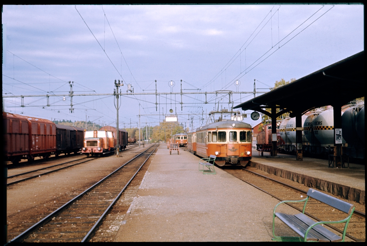 Statens Järnvägar, SJ X16 975 med fler fordon vid Åkers Styckebruk.