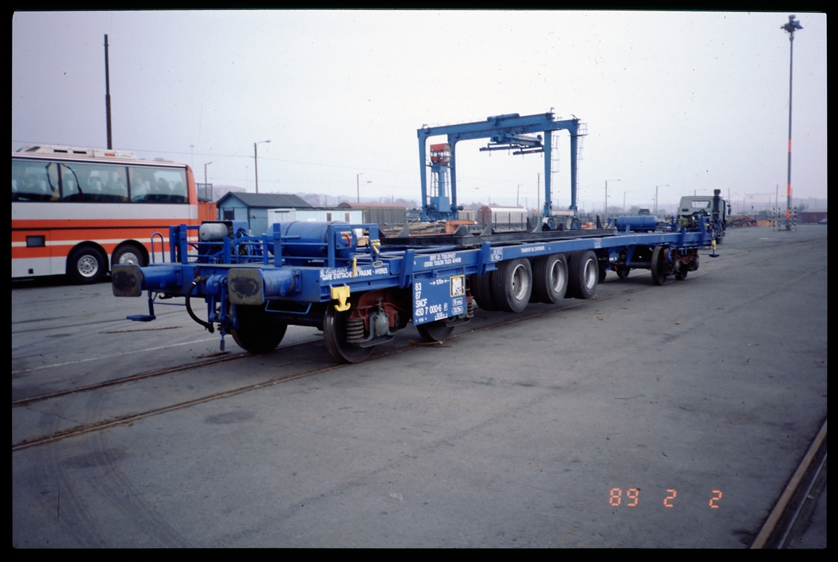 Kombinationsvagn för lastbil och järnväg, med avtagbart släp. SNCF Sgmms 83-87-450 7 000-6. France Societe Nationale des Chemins de fer Francais.