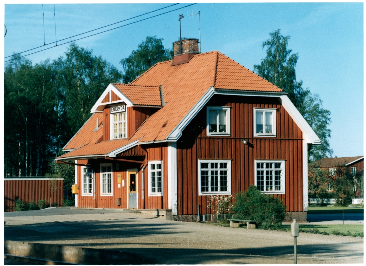 Station anlagd 1913. En- och enhalvvånings stationshus i trä.