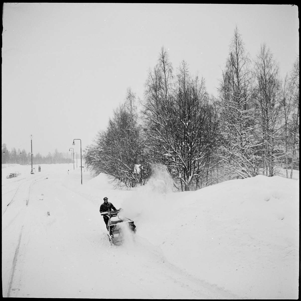 Snöröjning på bangården i Hoting.
