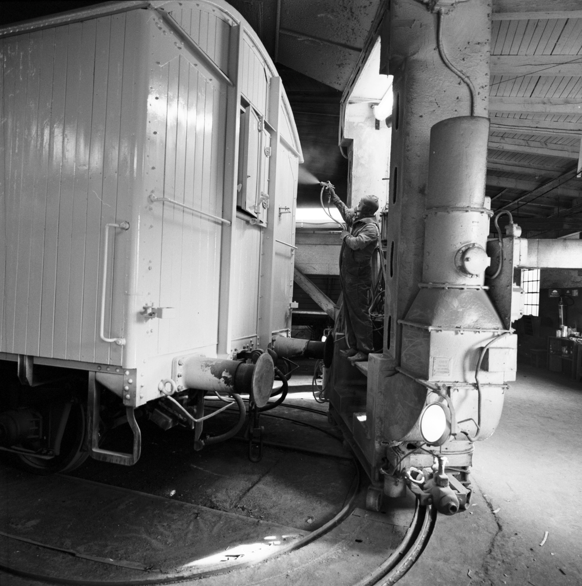 Huvudverkstad vid Fjällbo. Sprutmålning av vagn