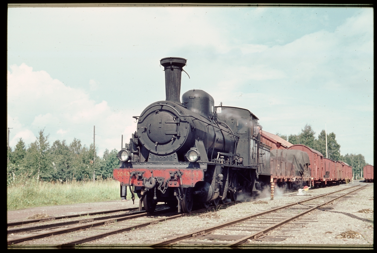 Statens Järnvägar, SJ Gp 3043 med godsvagnar.