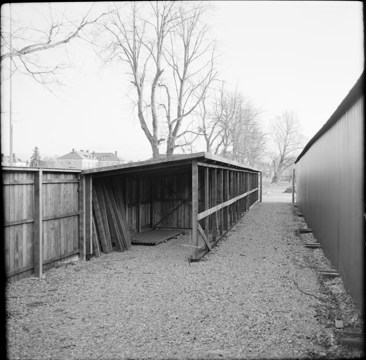 Skjul bredvid verkstaden på bangården i Mariefred som användes av Museijärnväg Östra Södermanlands Järnväg, ÖSlJ.