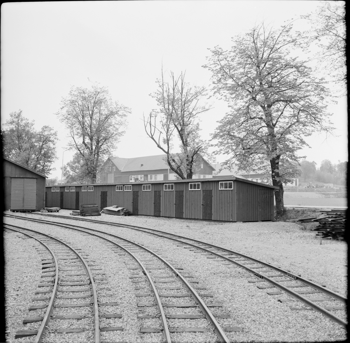 Förråds byggnad på bangården i Mariefred som användes av Museijärnväg Östra Södermanlands Järnväg, ÖSlJ.