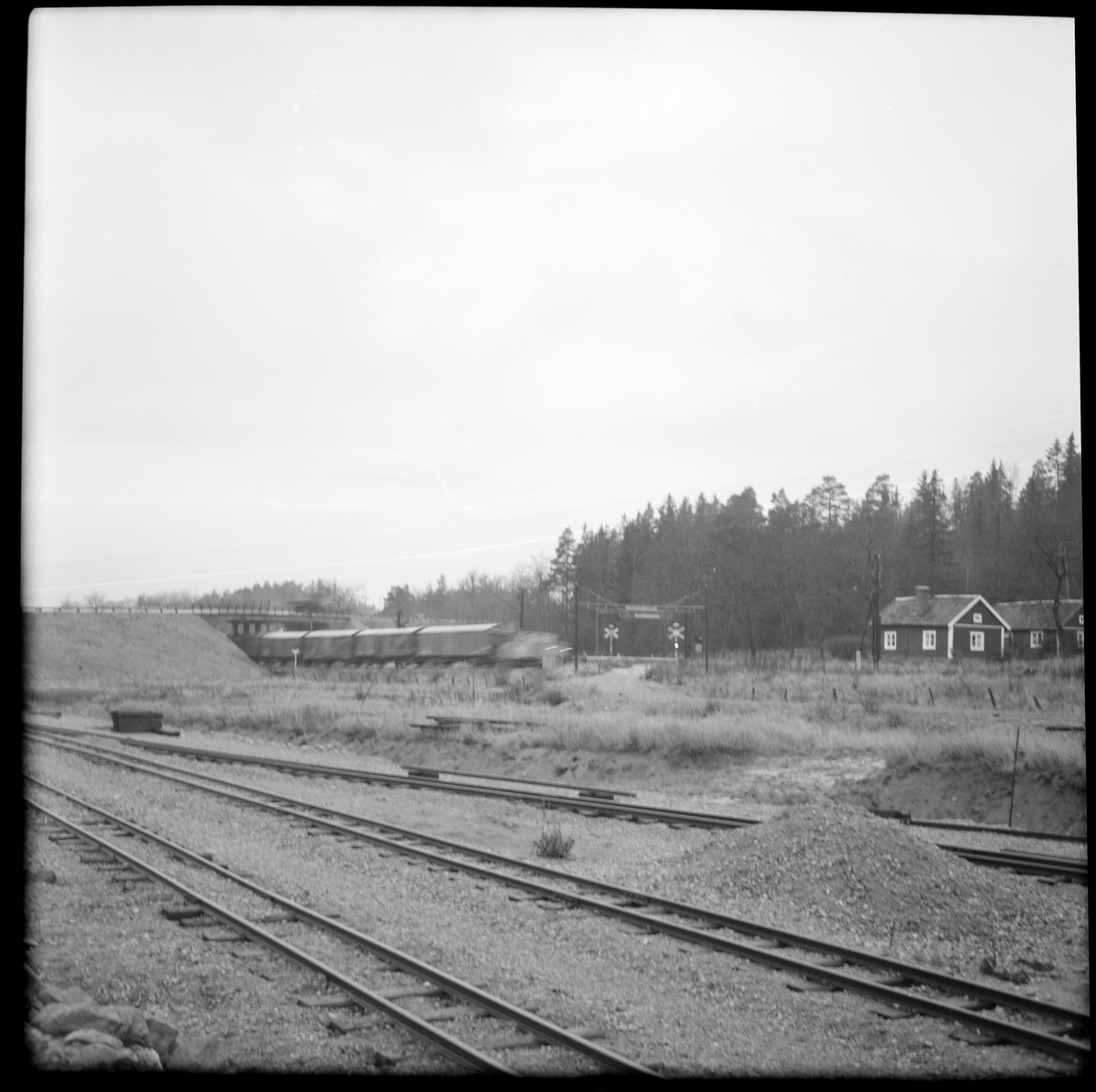 Godståg vid normalspåret bredvid Museijärnvägen, Östra Södermanlands Järnväg, ÖSlJ pågående arbete med läggning av smalspår vid Läggesta Södra station.