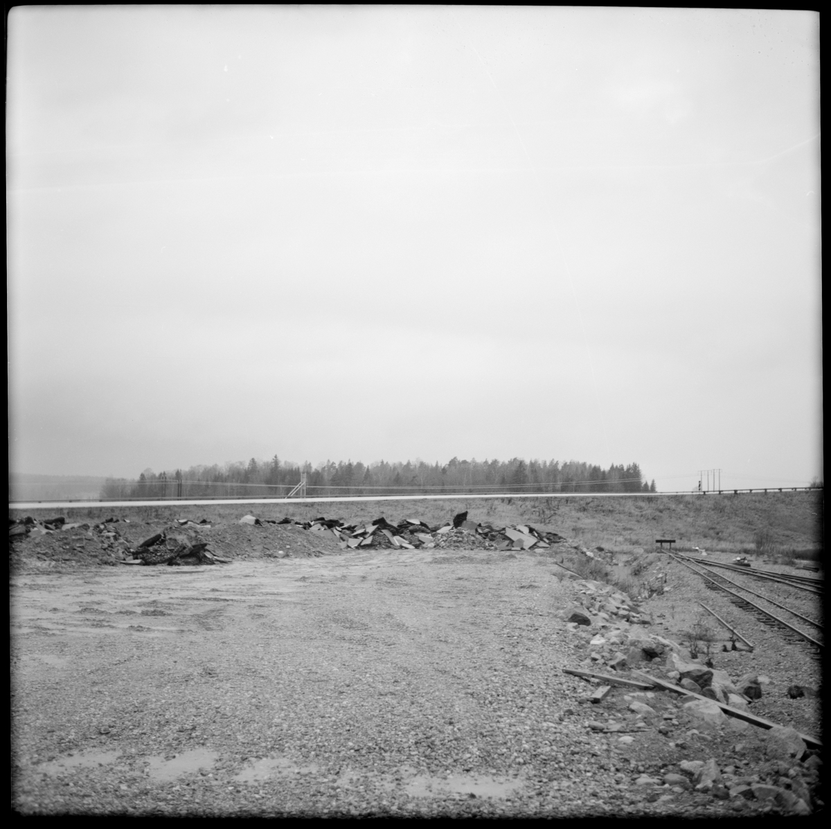 Titel: Pågående arbete med läggning av smalspår vid Läggesta Södra station där Museijärnvägen, Östra Södermanlands Järnväg, ÖSlJ förlänger bansträckningen.