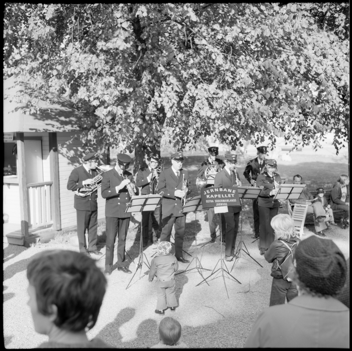 Museijärnväg Östra Södermanlands Järnväg, ÖSlJ musikkår Jernbanekapellet spelar på järnvägsstationen i Mariefred.