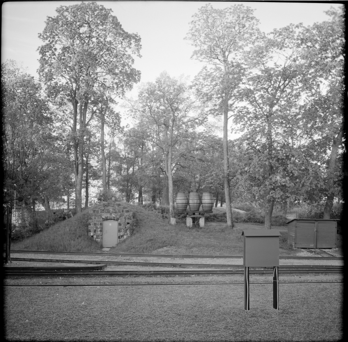 Tre tunnor som fungerar som vattenreservoar samt en jordkällare vid järnvägsstationen i Mariefred.