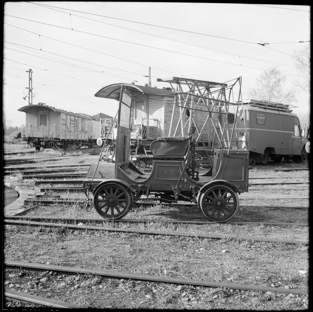 Statens Järnvägar, SJ motordressin vid vändskiva utanför lokstallet i Hagalund.