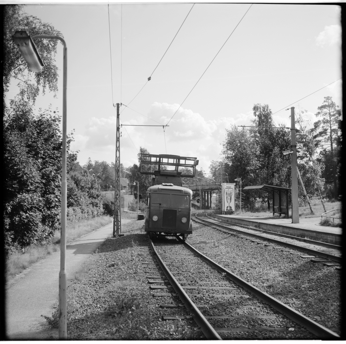 Trafik Aktiebolaget Stockholm Södra Lidingöns Järnväg, SSLidJ luftledningsvagn 102 "Tornsvalan" vid Baggeby.