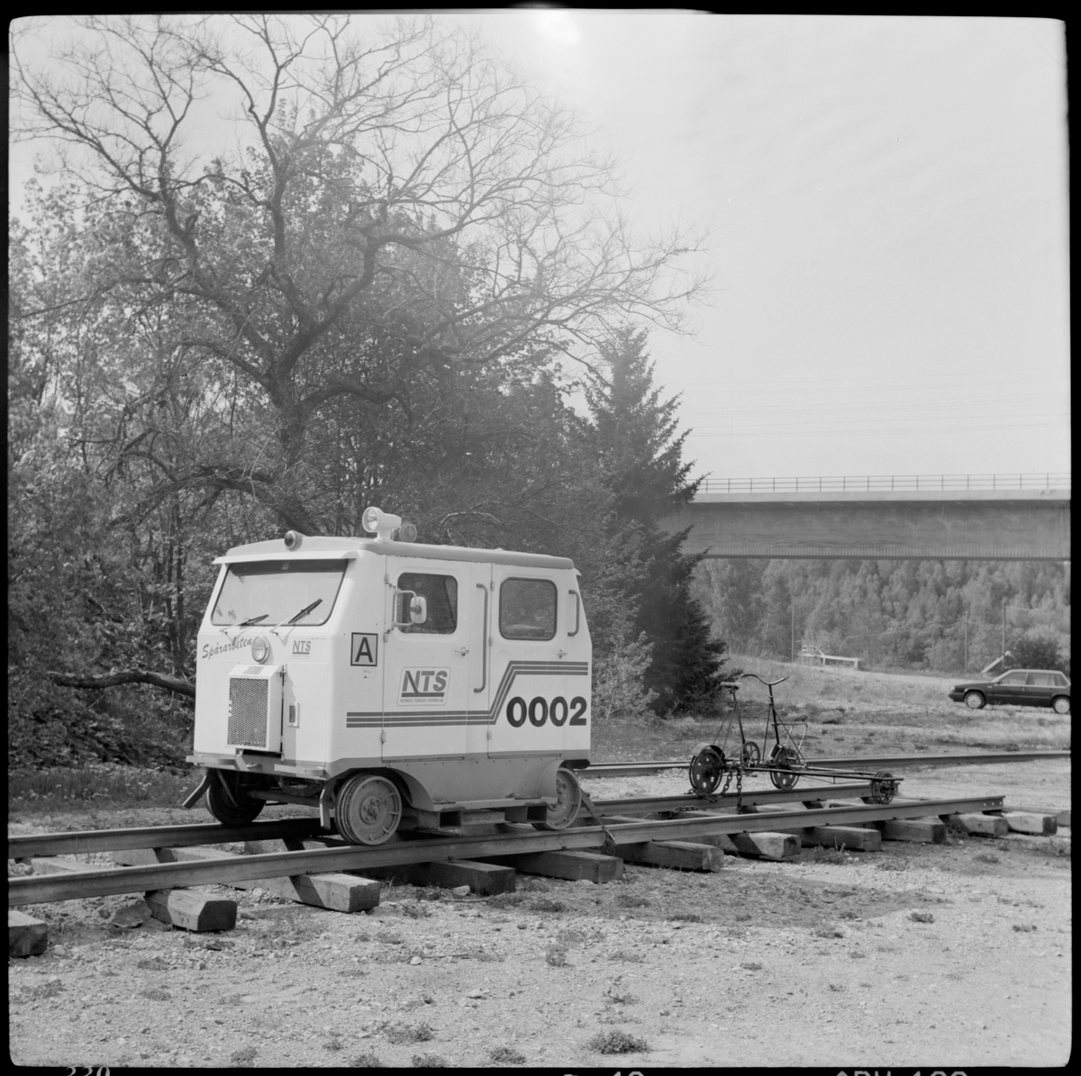 Motordressin för spårarbete Nordic Turnout System, NTS dressin 0002 vid Läggesta nedre.