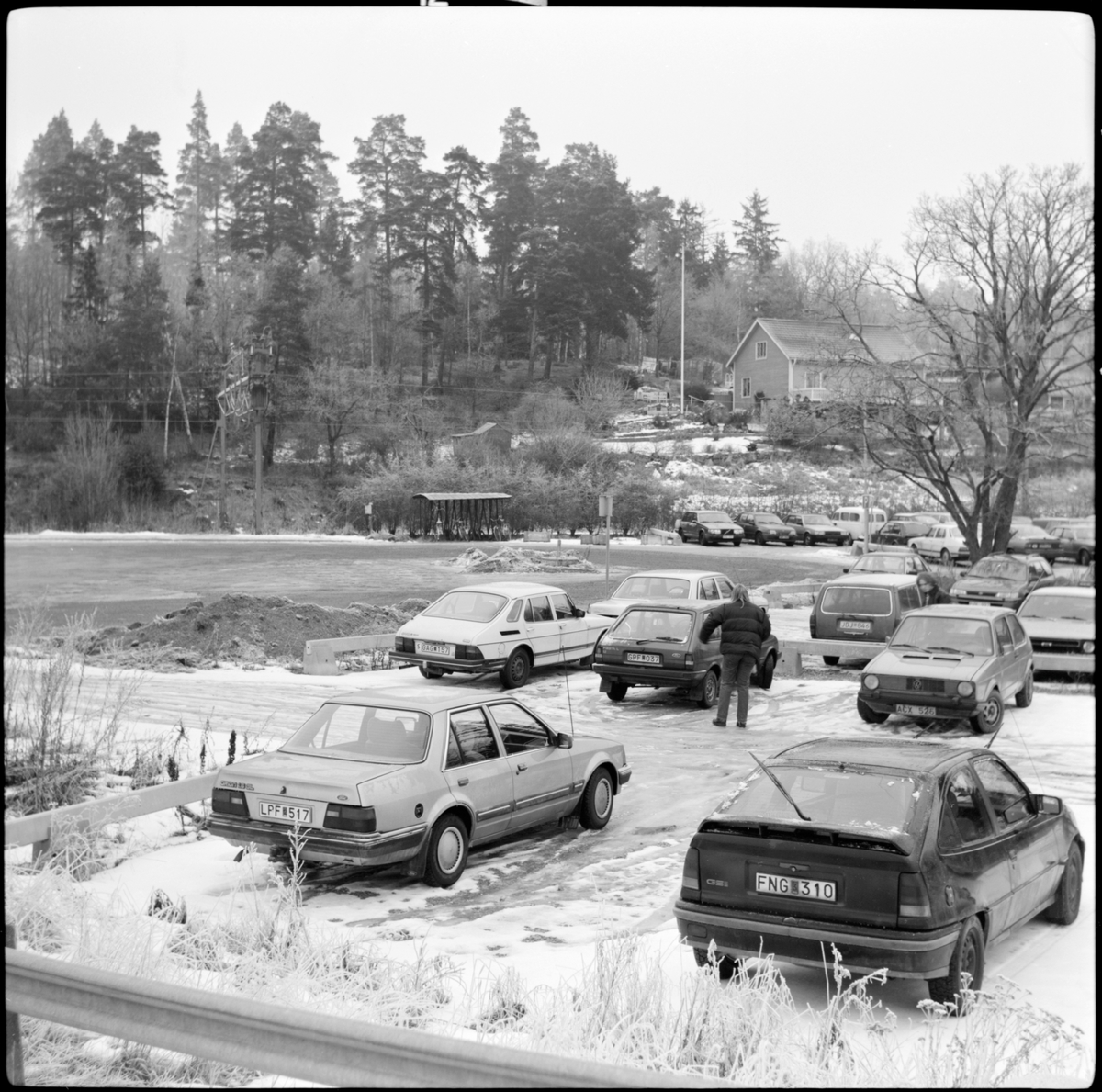 Parkeringen till den gamla tågstationen vid Läggesta.