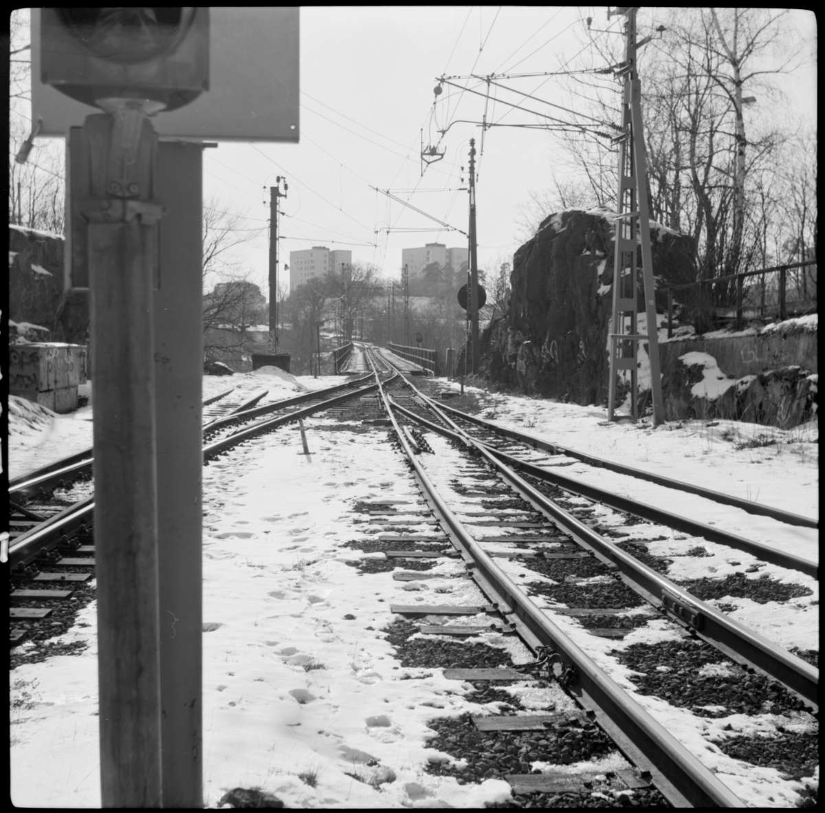 Vy från Stocksund station mot järnvägsbron över Stocksundet.