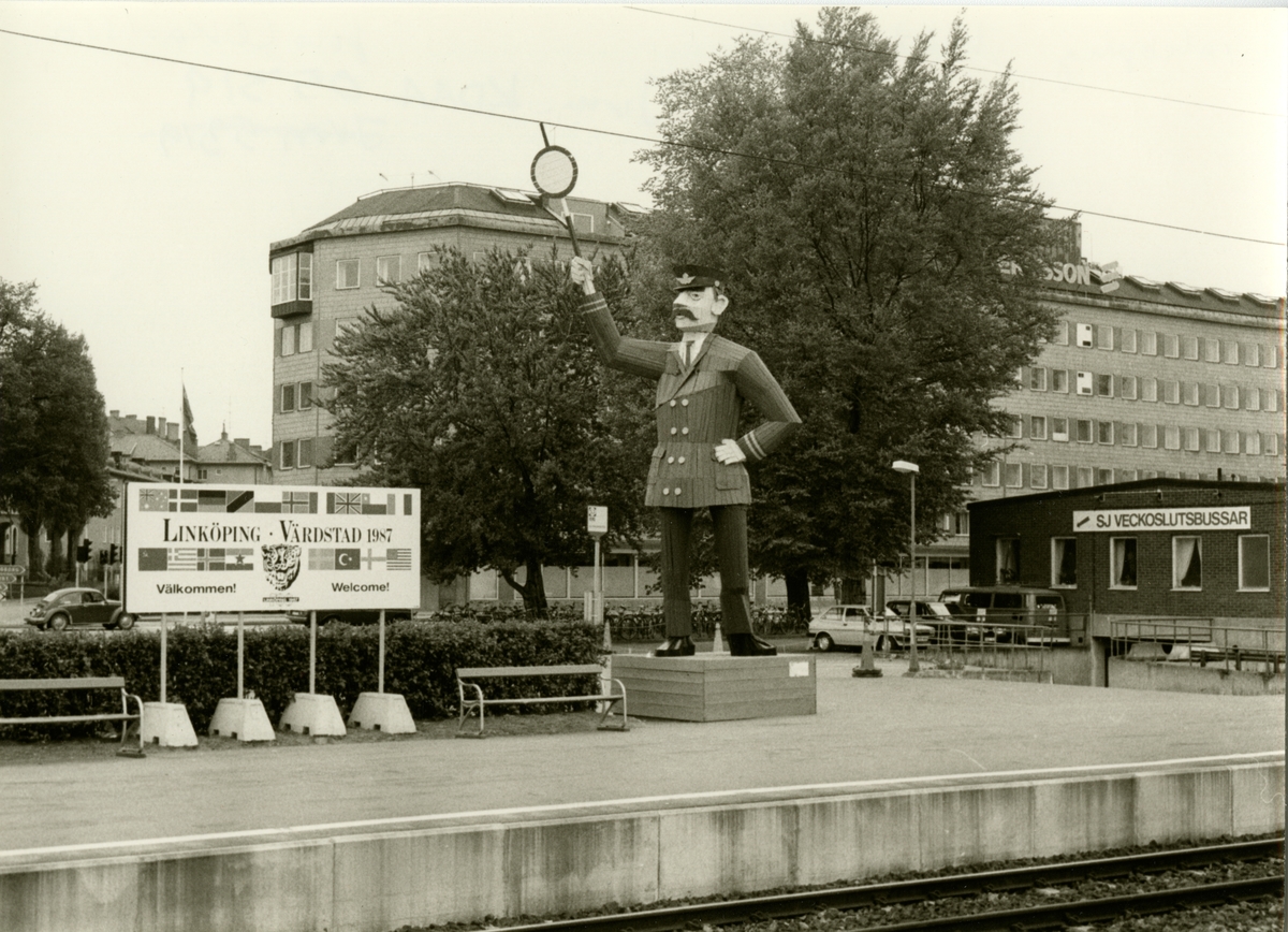 Träfigur på Linköpings Centralstation.