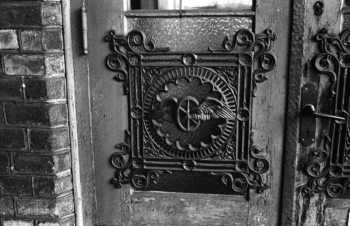 Dörr med beslag, Charlottenberg Station. Gränsreportage.