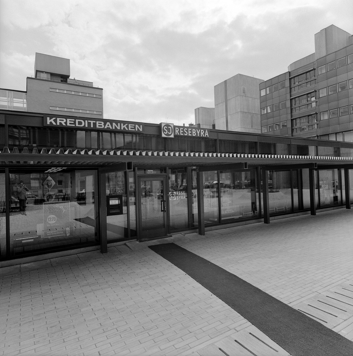 Titel:Statens Järnvägar, SJ Rbr, Statens Järnvägars resebyrå på Karlavägen, exteriör