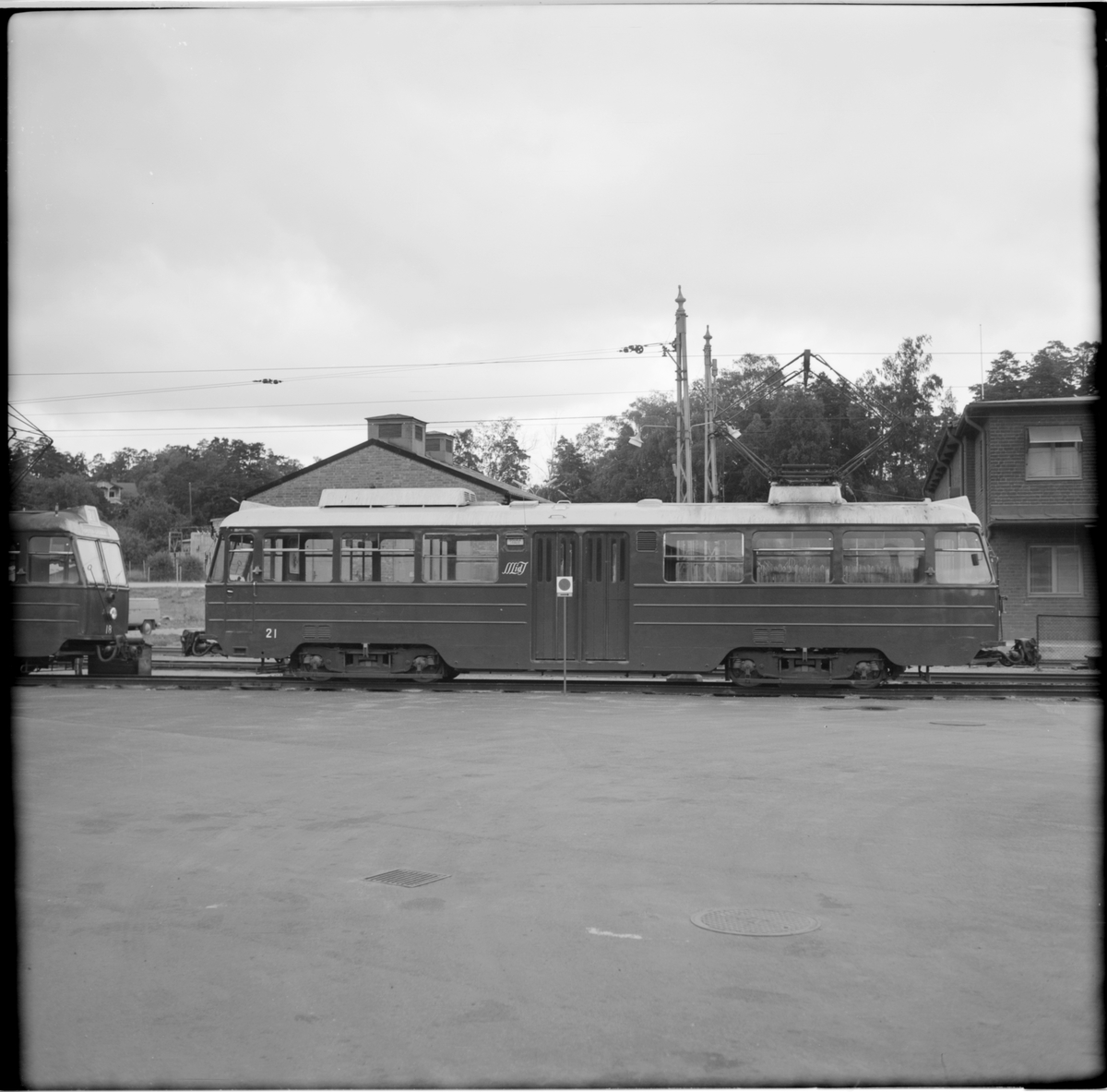 Trafik Aktiebolaget Stockholm Södra Lidingöns Järnväg, SSLidJ A24B 21 "ängbyvagn" linje 21 Ropsten vid AGA station.